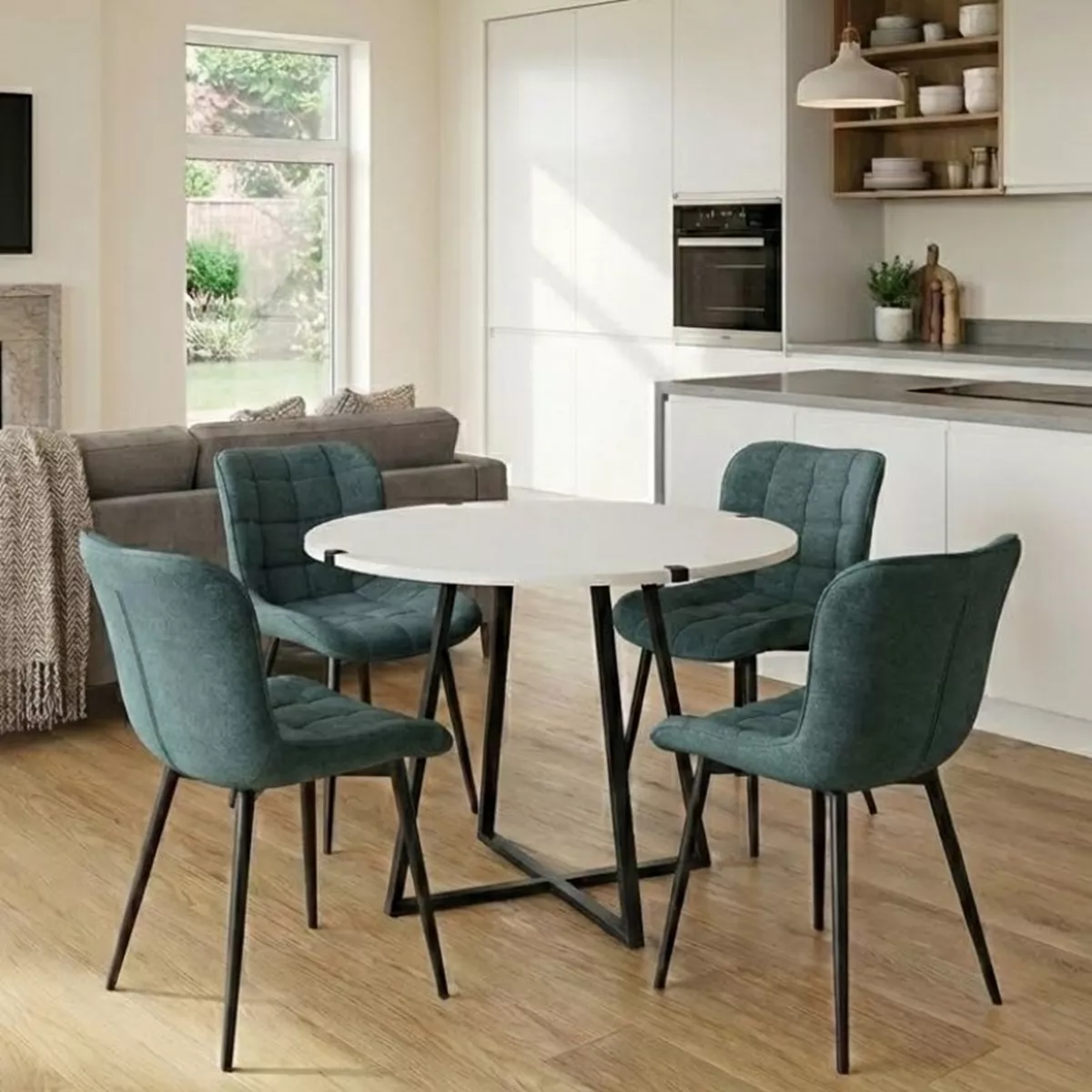 Σετ τραπεζαρία 5τμχ Rubes - Chiara Megapap χρώμα λευκό - πράσινο Ø100x78εκ.