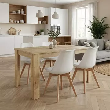 Σετ τραπεζαρία 5τμχ Darlen - Viva Megapap χρώμα sapphire oak - λευκό/φυσικό πόδι 125x72x74εκ.