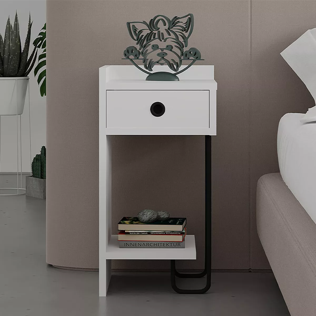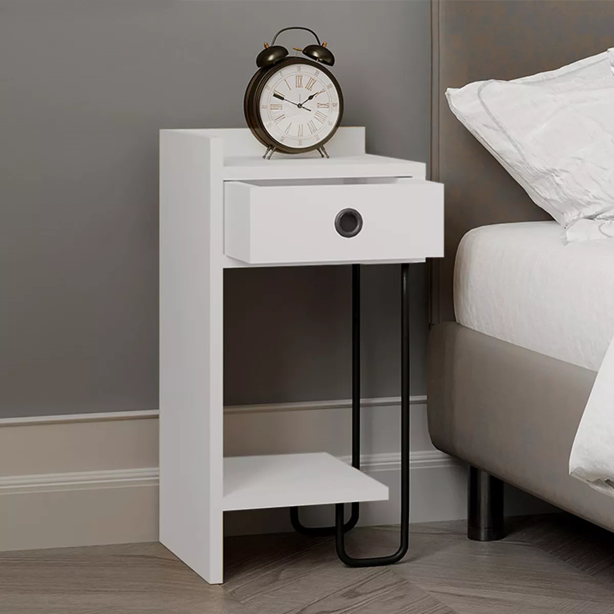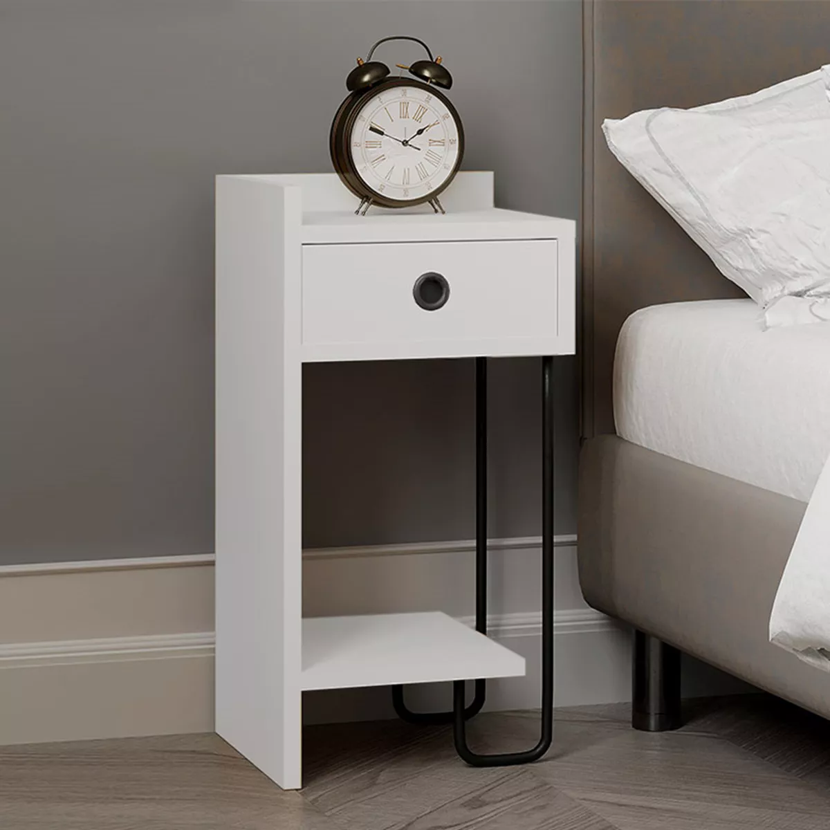 Κομοδίνο μελαμίνης Sirius Megapap αριστερό χρώμα λευκό 32x30x61εκ.