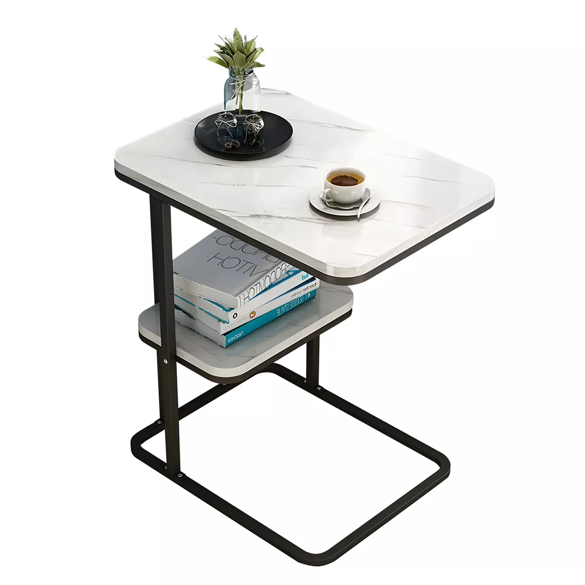 Τραπεζάκι Βοηθητικό ArteLibre ALAZANI Λευκό Με Όψη Μαρμάρου MDF/Μέταλλο 50x30x58cm