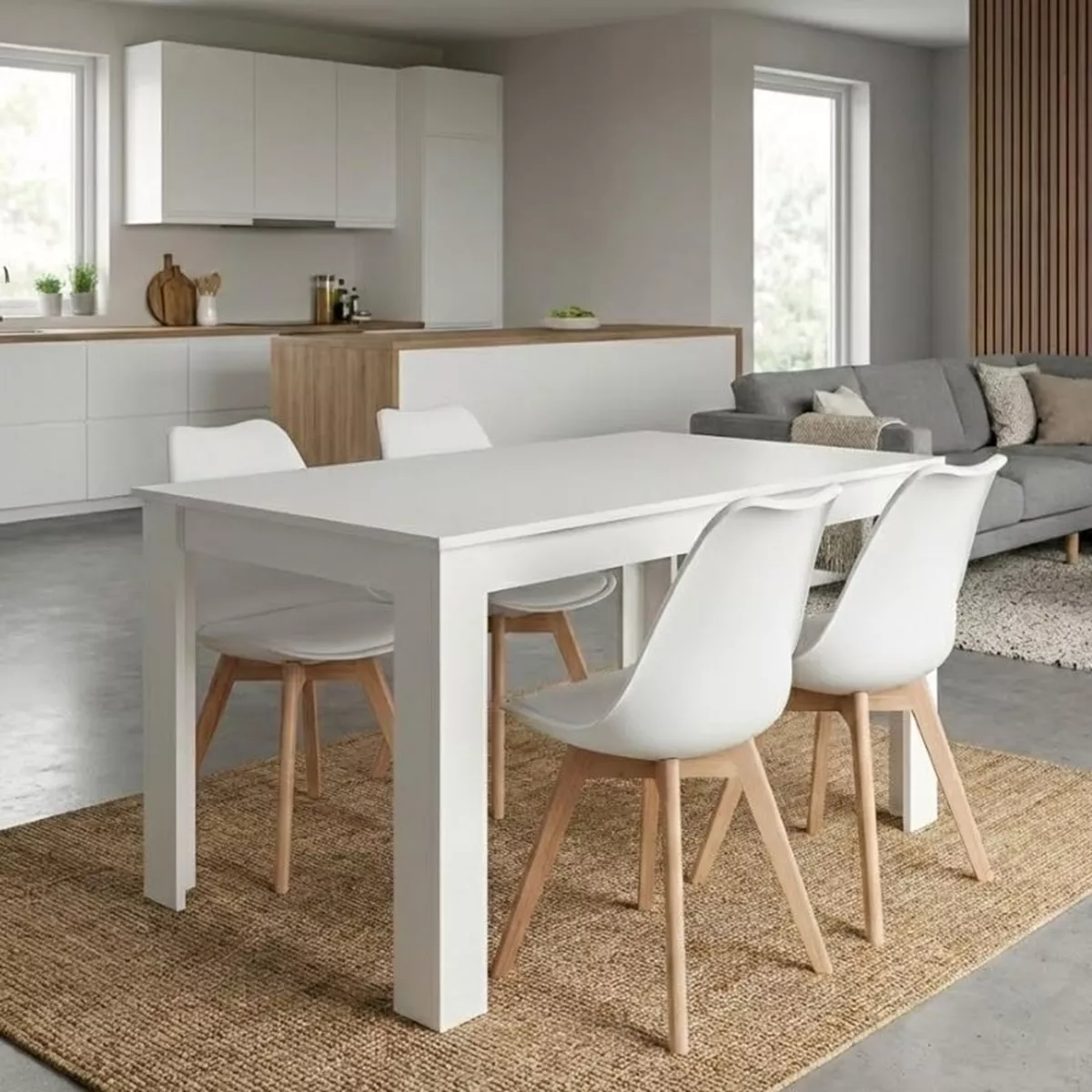Σετ τραπεζαρία 5τμχ Darlen - Viva Megapap χρώμα λευκό - λευκό/φυσικό πόδι 125x72x74εκ.