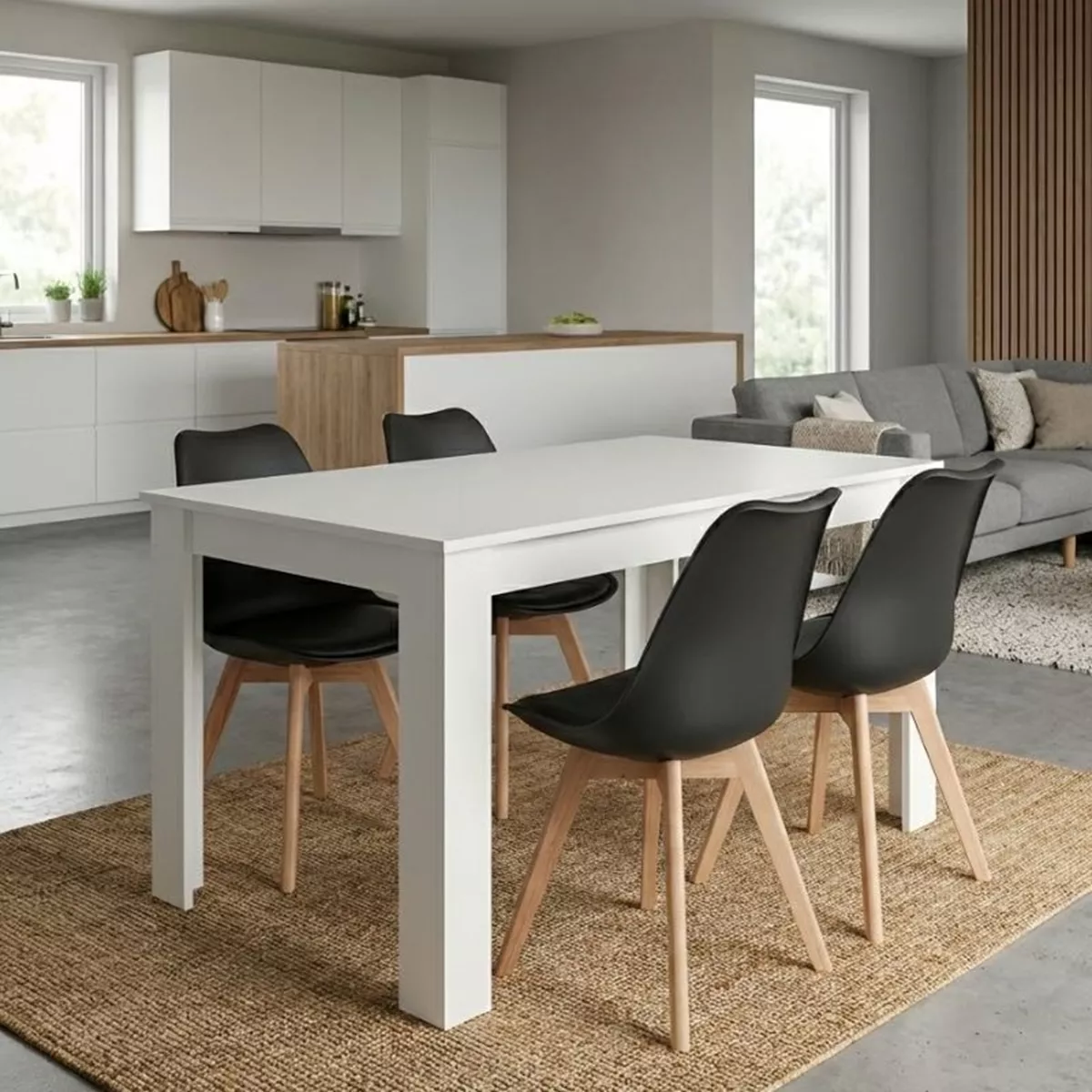 Σετ τραπεζαρία 5τμχ Darlen - Viva Megapap χρώμα λευκό - μαύρο/φυσικό πόδι 125x72x74εκ.