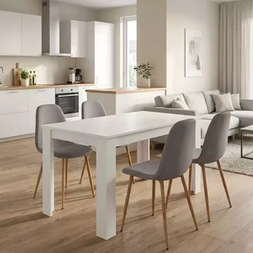 Σετ τραπεζαρία 5τμχ Darlen - Iris Megapap χρώμα λευκό - ανοιχτό μπεζ/φυσικό πόδι 125x72x74εκ.