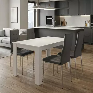 Σετ τραπεζαρία 5τμχ Darlen - Rosa Megapap χρώμα λευκό - γκρι/χρωμίου πόδι 125x72x74εκ.