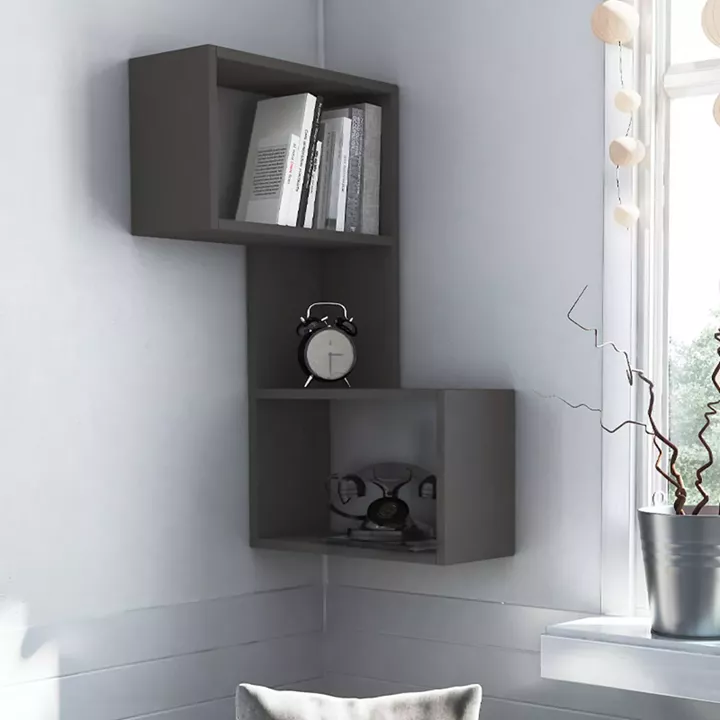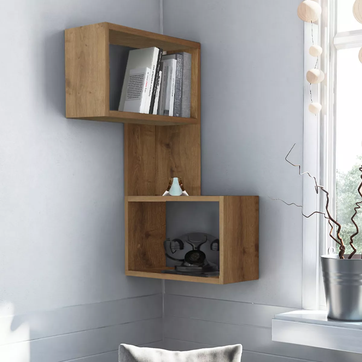 Ραφιέρα τοίχου γωνιακή Part Megapap μελαμίνης χρώμα ανοιχτό καρυδί 47x20x82εκ.