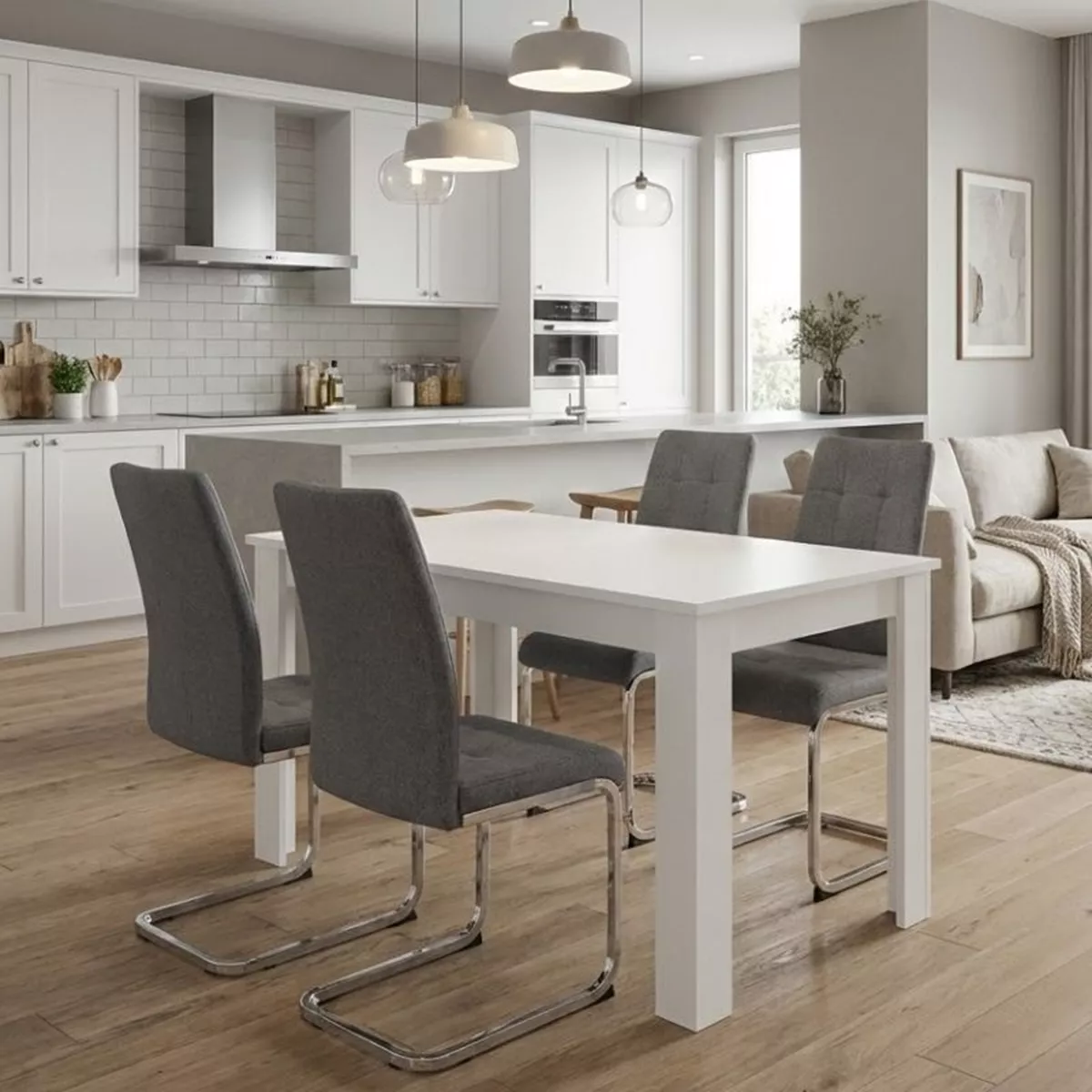 Σετ τραπεζαρία 5τμχ Darlen - Laura Megapap χρώμα λευκό - γκρι 125x72x74εκ.