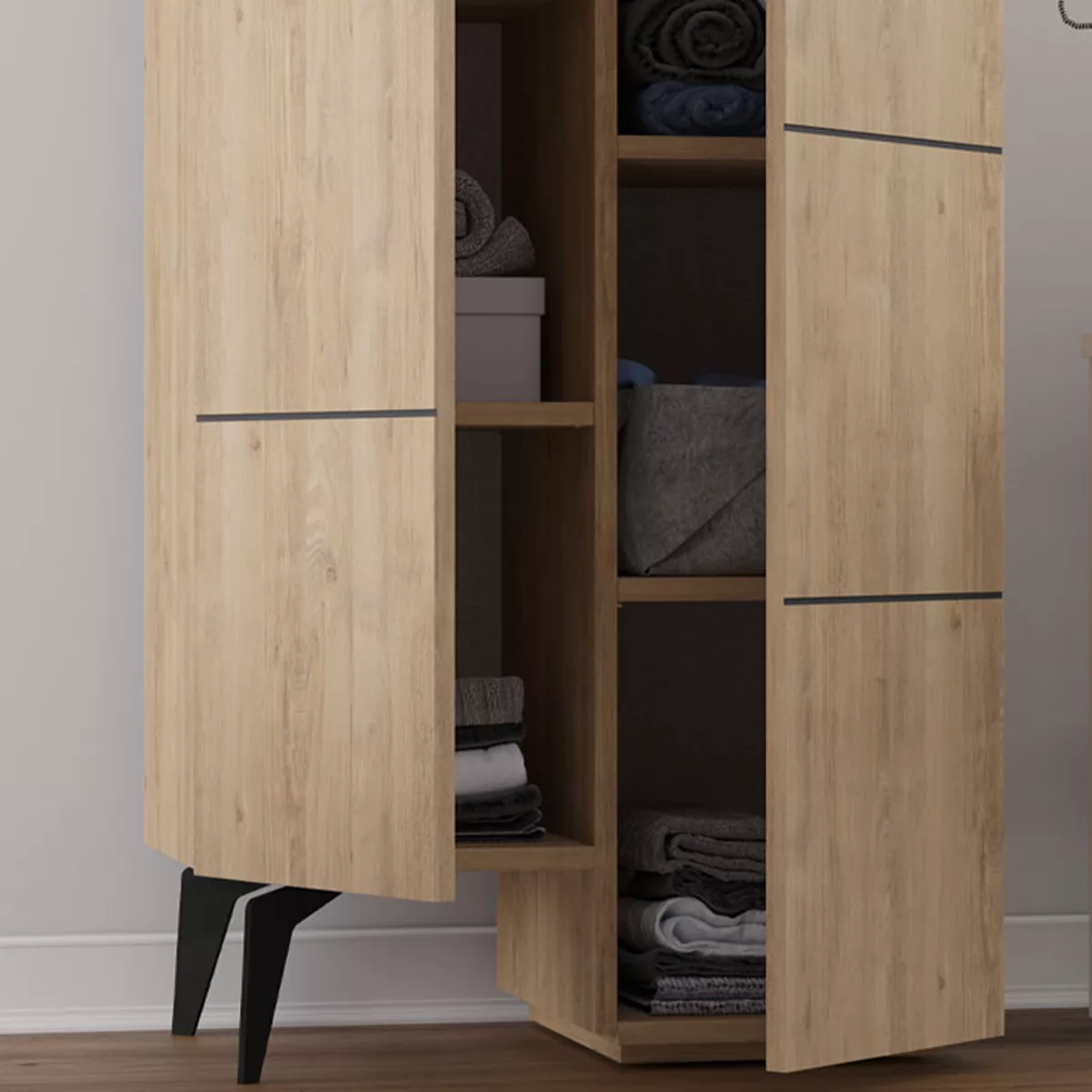 Ντουλάπι κουζίνας/μπάνιου - Παπουτσοθήκη Stair Megapap μελαμίνης χρώμα φυσικό οξιάς 62,2x37,4x156εκ.