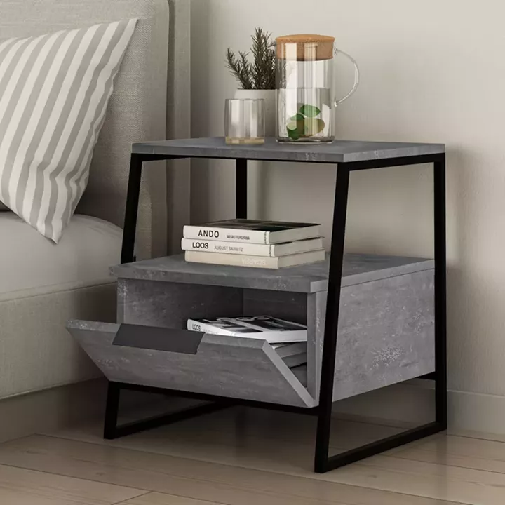 Κομοδίνο μελαμίνης Pal Megapap χρώμα γκρι ρετρό 45x40x50εκ.