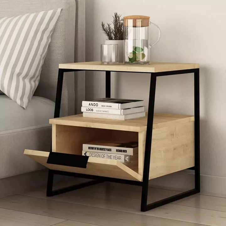 Κομοδίνο μελαμίνης Pal Megapap χρώμα φυσικό οξιάς 45x40x50εκ.