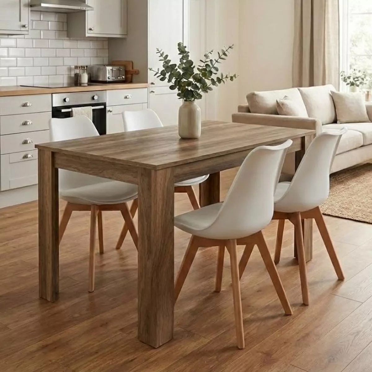 Σετ τραπεζαρία 5τμχ Darlen - Viva Megapap χρώμα καρυδί - λευκό/φυσικό πόδι 125x72x74εκ.