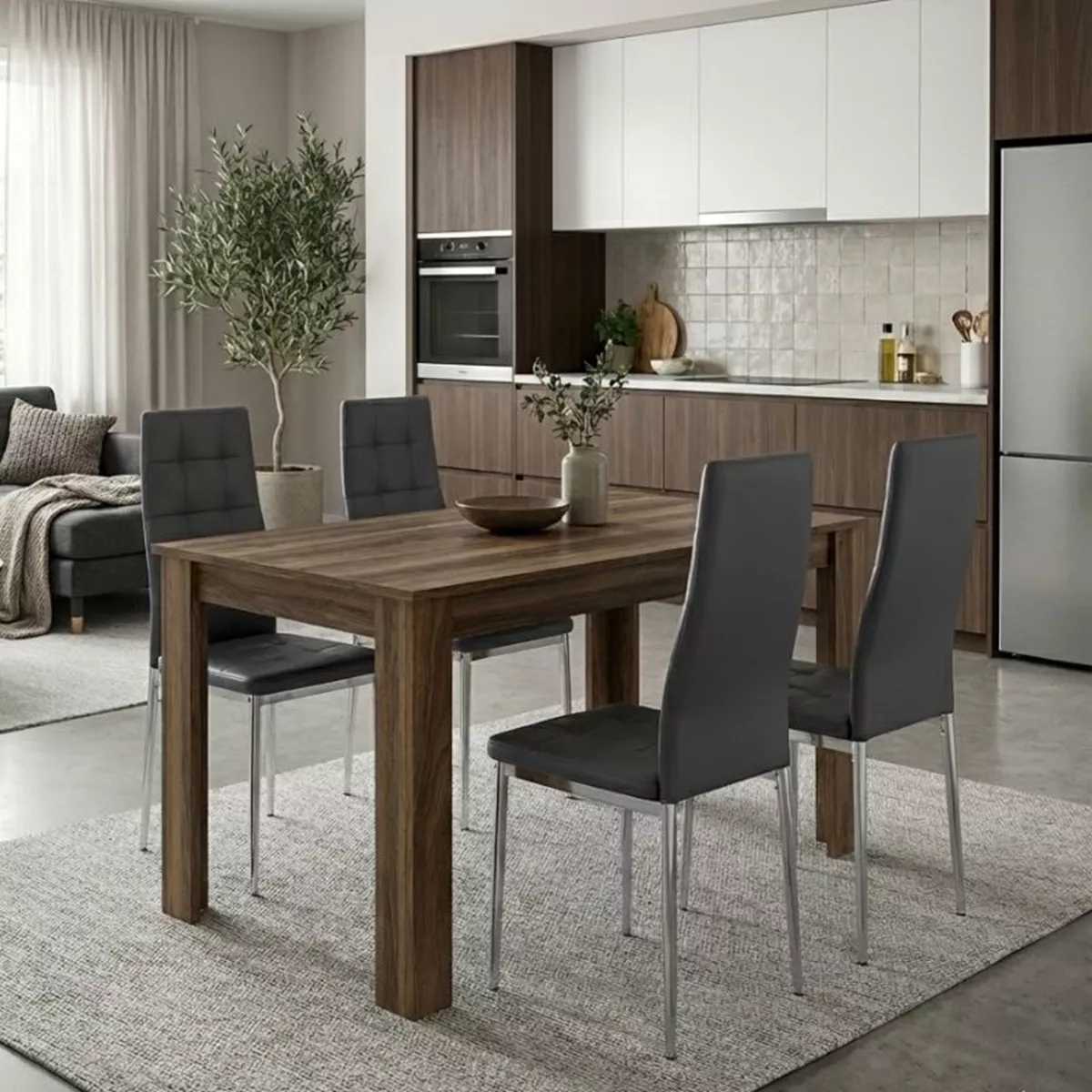 Σετ τραπεζαρία 5τμχ Darlen - Rosa Megapap χρώμα καρυδί - γκρι/χρωμίου πόδι 125x72x74εκ.