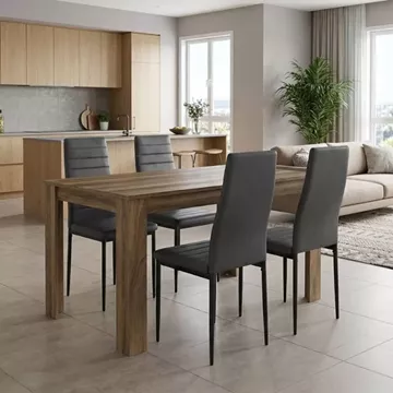 Σετ τραπεζαρία 5τμχ Darlen - Rosa Megapap χρώμα καρυδί - μαύρο 125x72x74εκ.