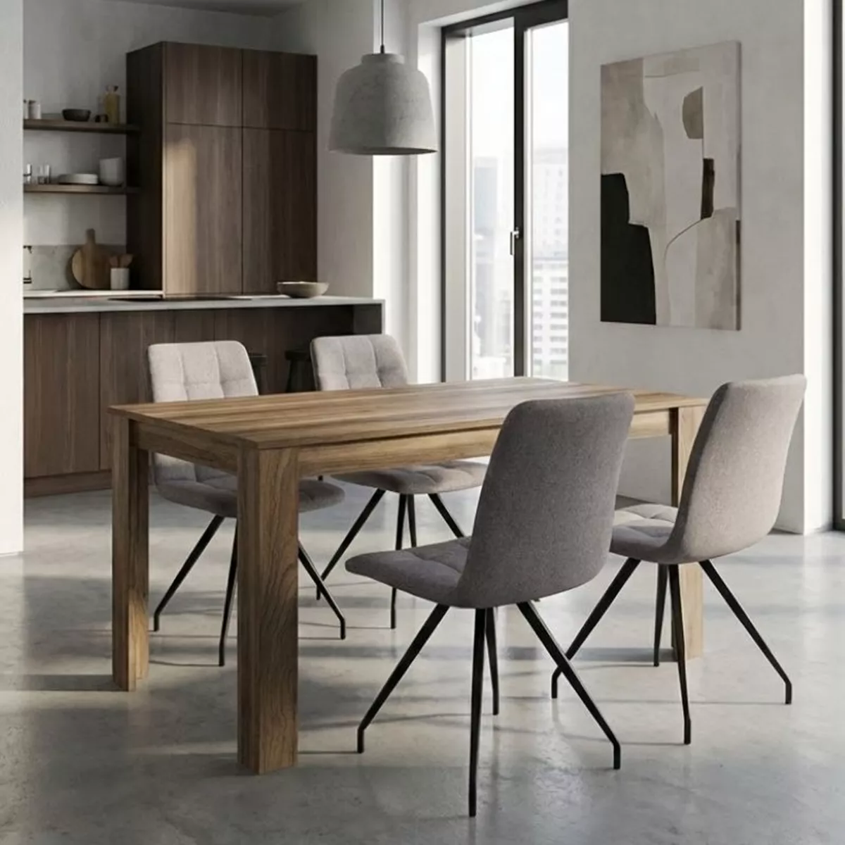 Σετ τραπεζαρία 5τμχ Darlen - Bianca Megapap χρώμα καρυδί - ανοιχτό μπεζ 125x72x74εκ.
