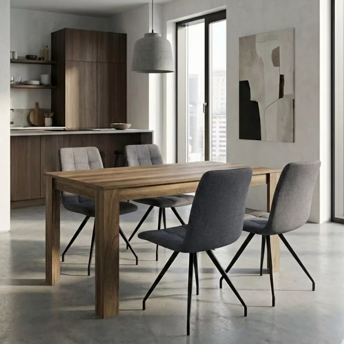 Σετ τραπεζαρία 5τμχ Darlen - Bianca Megapap χρώμα καρυδί - γκρι 125x72x74εκ.