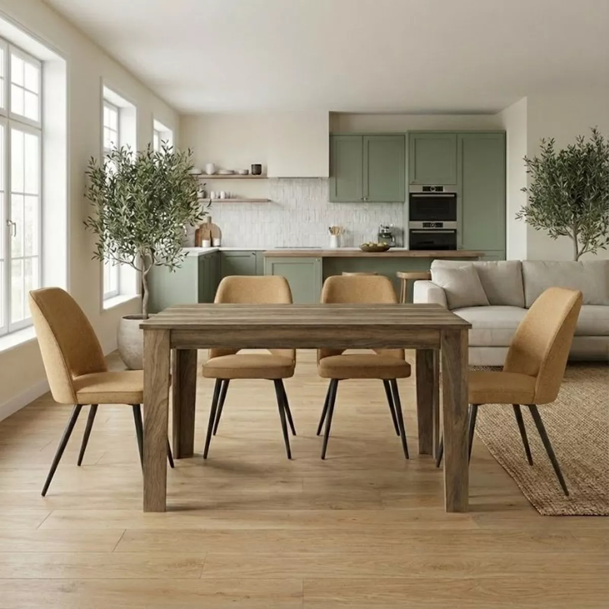 Σετ τραπεζαρία 5τμχ Darlen - Christy Megapap χρώμα καρυδί - μουσταρδί 125x72x74εκ.