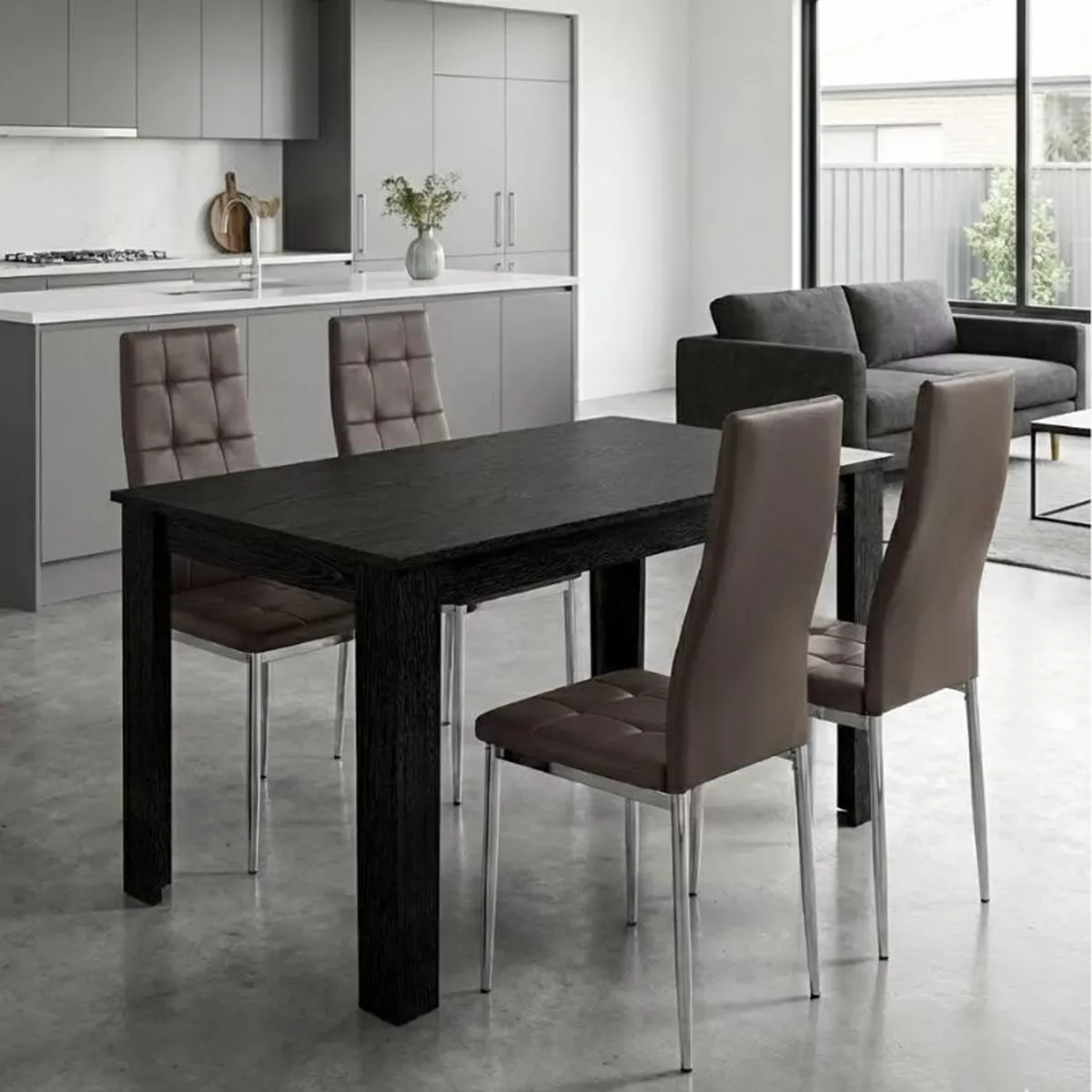 Σετ τραπεζαρία 5τμχ Darlen - Rosa Megapap χρώμα sencron black - καφέ/χρωμίου πόδι 125x72x74εκ.