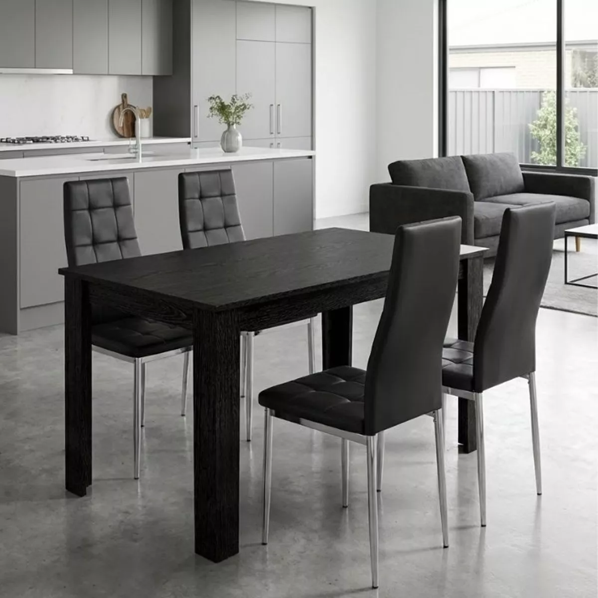 Σετ τραπεζαρία 5τμχ Darlen - Rosa Megapap χρώμα sencron black - μαύρο/χρωμίου πόδι 125x72x74εκ.