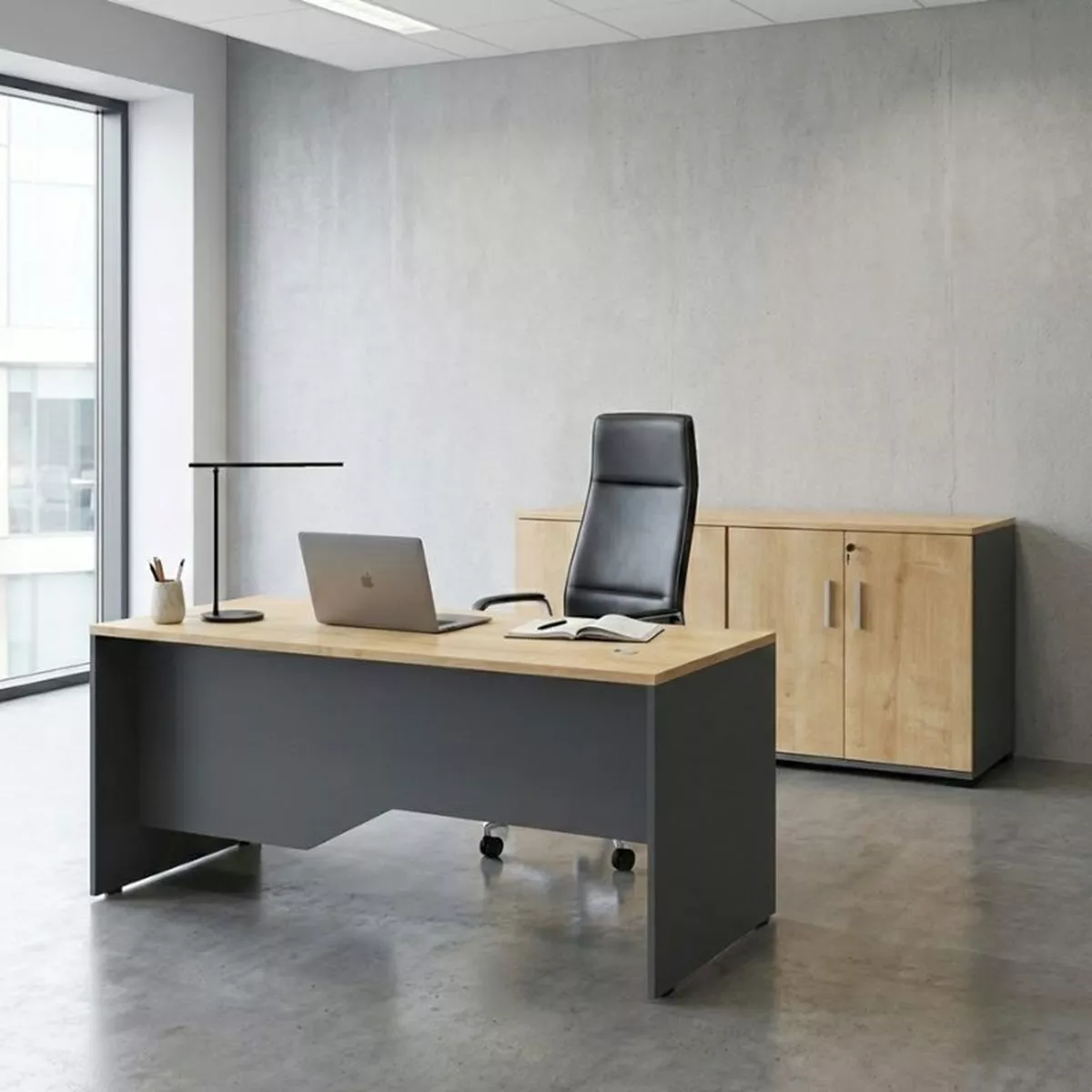 Ντουλάπι γραφείου με κλειδαριά επαγγελματικό Venturo Megapap χρώμα ανθρακί - φυσικό οξιάς 160x40x80εκ.