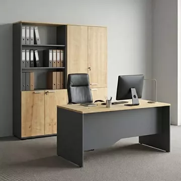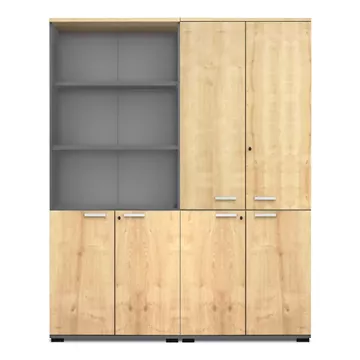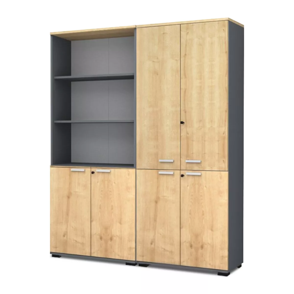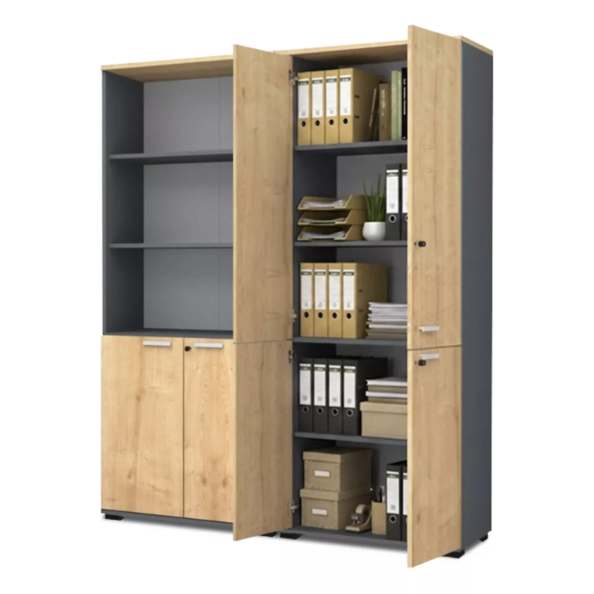Ντουλάπα γραφείου με κλειδαριά επαγγελματική Venturo Megapap χρώμα ανθρακί - φυσικό οξιάς 160x40x200εκ.