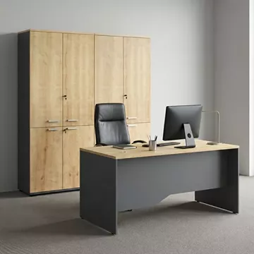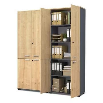 Ντουλάπα γραφείου με κλειδαριά επαγγελματική Venturo Megapap χρώμα ανθρακί - φυσικό οξιάς 160x40x200εκ.