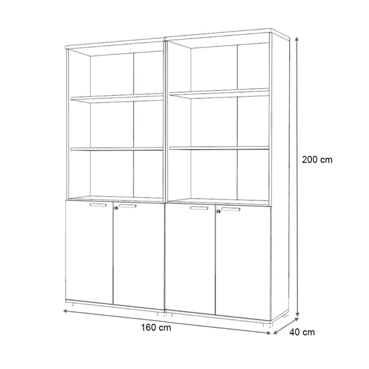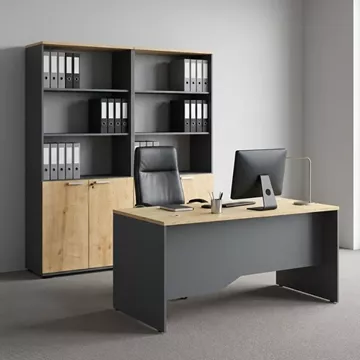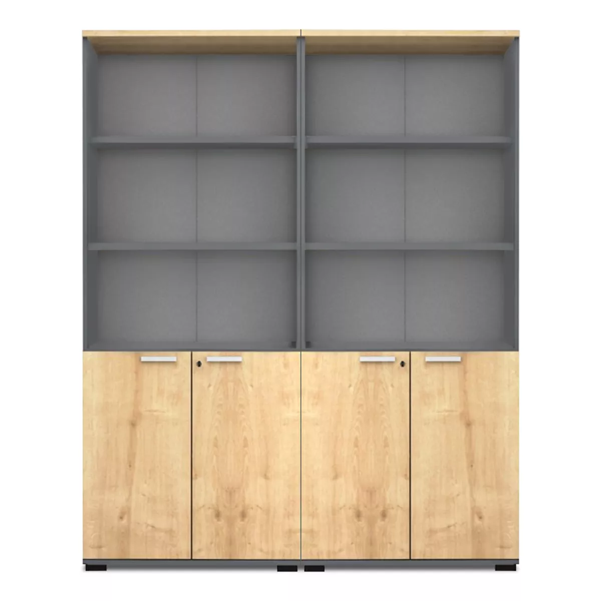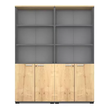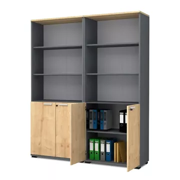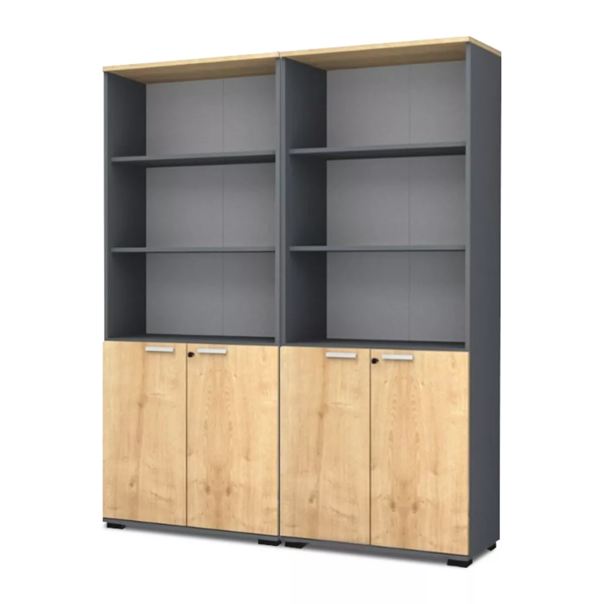 Βιβλιοθήκη γραφείου με κλειδαριά επαγγελματική Venturo Megapap χρώμα ανθρακί - φυσικό οξιάς 160x40x200εκ.