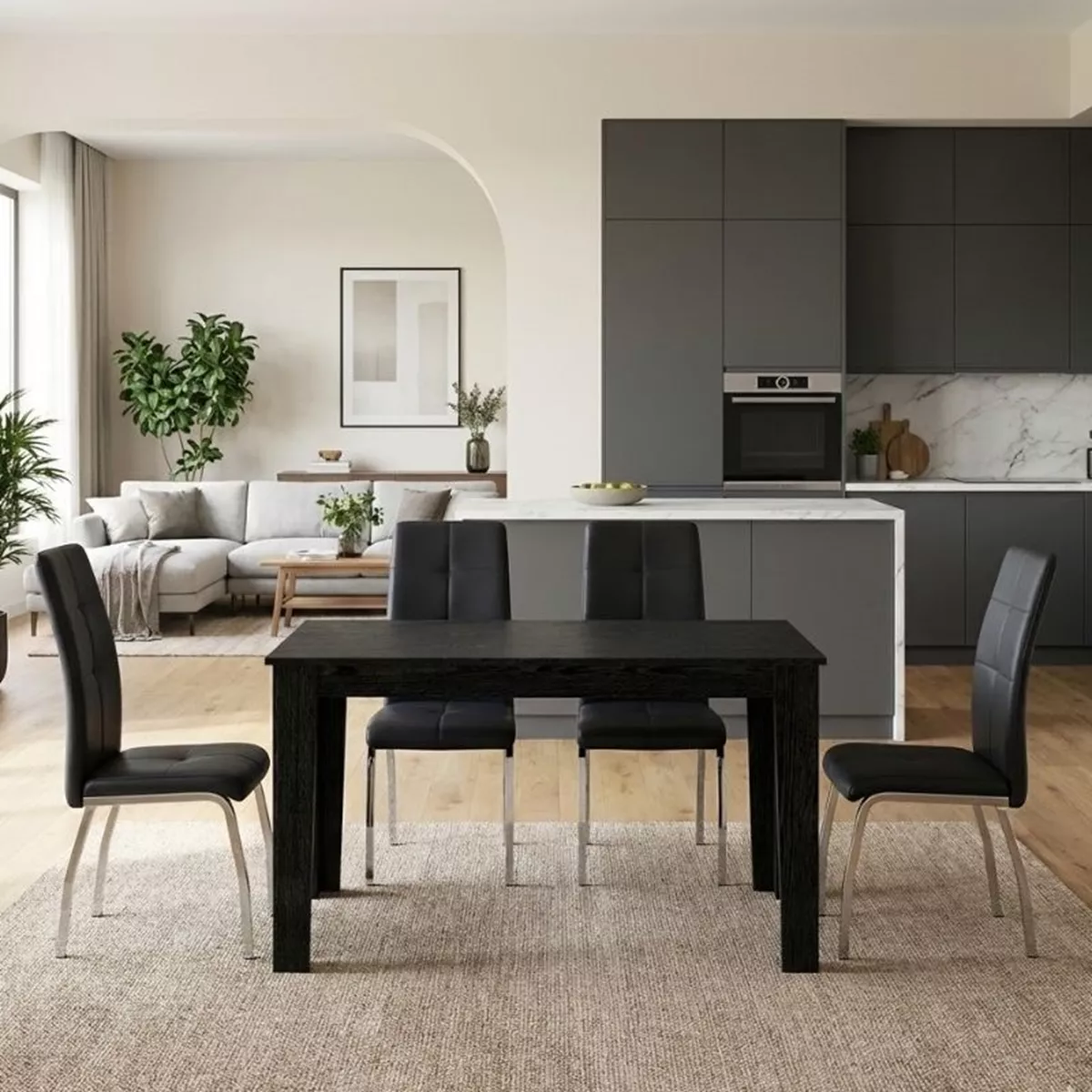 Σετ τραπεζαρία 5τμχ Darlen - Alma Megapap χρώμα sencron black - μαύρο 125x72x74εκ.
