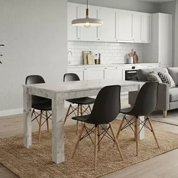 Σετ τραπεζαρία 5τμχ Darlen - Nova Megapap χρώμα λευκό εφέ μαρμάρου - μαύρο 125x72x74εκ.