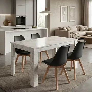 Σετ τραπεζαρία 5τμχ Darlen - Viva Megapap χρώμα λευκό εφέ μαρμάρου - μαύρο/φυσικό πόδι 125x72x74εκ.
