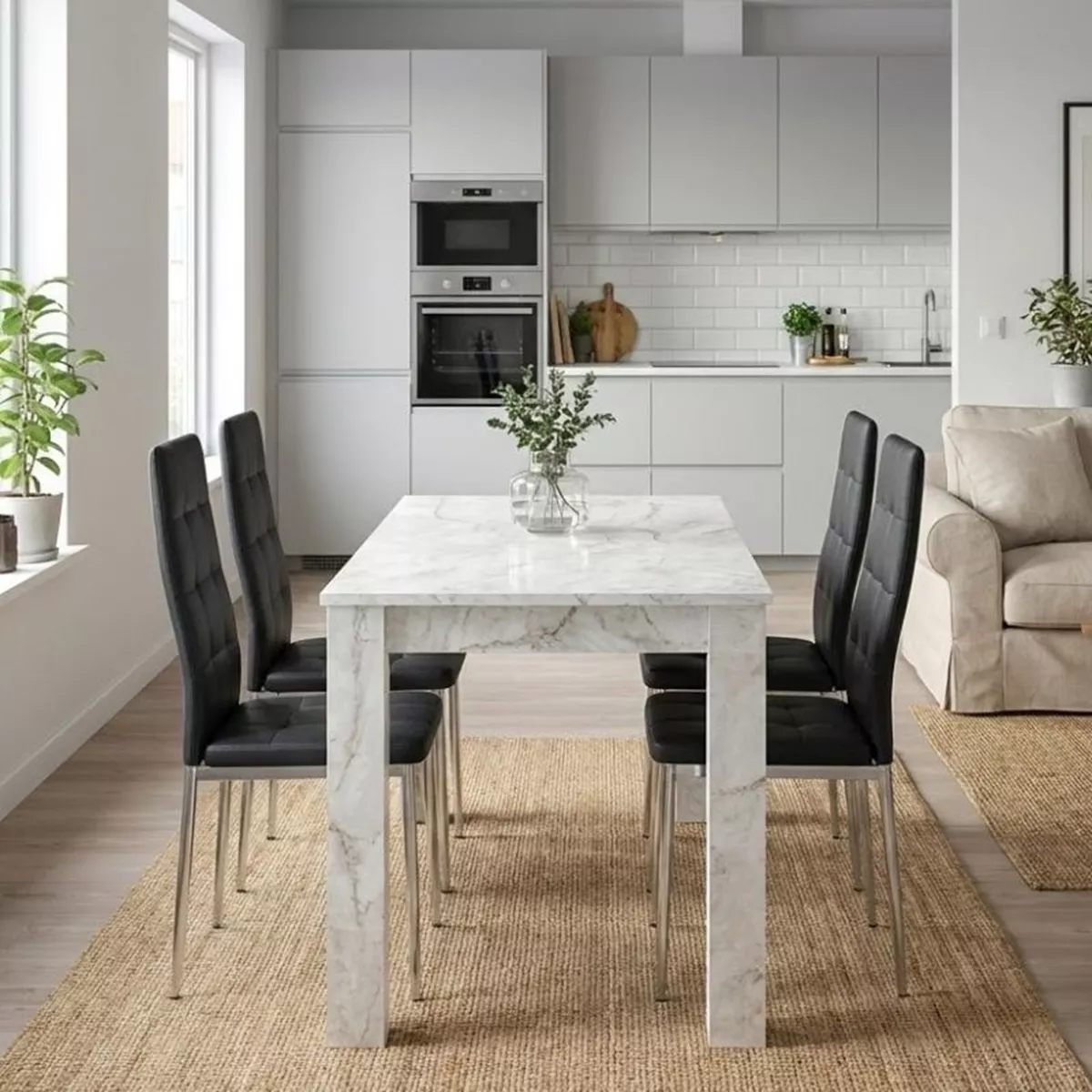 Σετ τραπεζαρία 5τμχ Darlen - Rosa Megapap χρώμα λευκό εφέ μαρμάρου - μαύρο/χρωμίου πόδι 125x72x74εκ.
