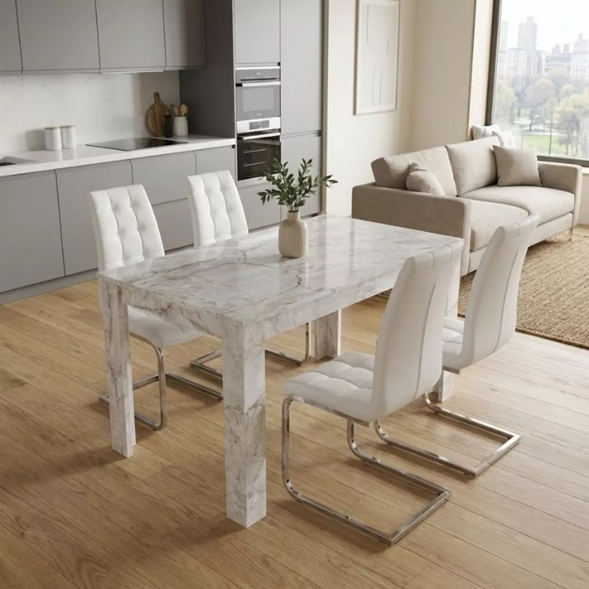Σετ τραπεζαρία 5τμχ Darlen - Vela Megapap χρώμα λευκό εφέ μαρμάρου - λευκό 125x72x74εκ.