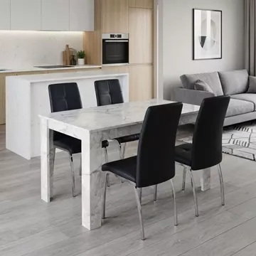 Σετ τραπεζαρία 5τμχ Darlen - Alma Megapap χρώμα λευκό εφέ μαρμάρου - μαύρο 125x72x74εκ.