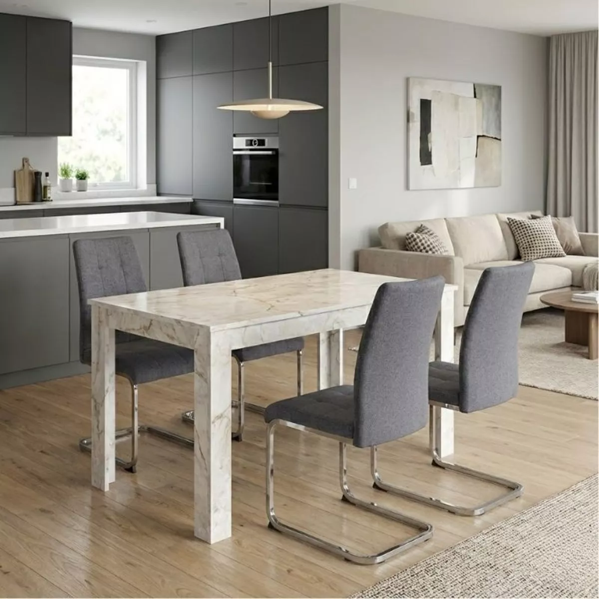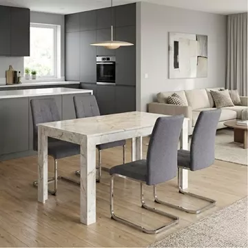 Σετ τραπεζαρία 5τμχ Darlen - Laura Megapap χρώμα λευκό εφέ μαρμάρου - γκρι 125x72x74εκ.