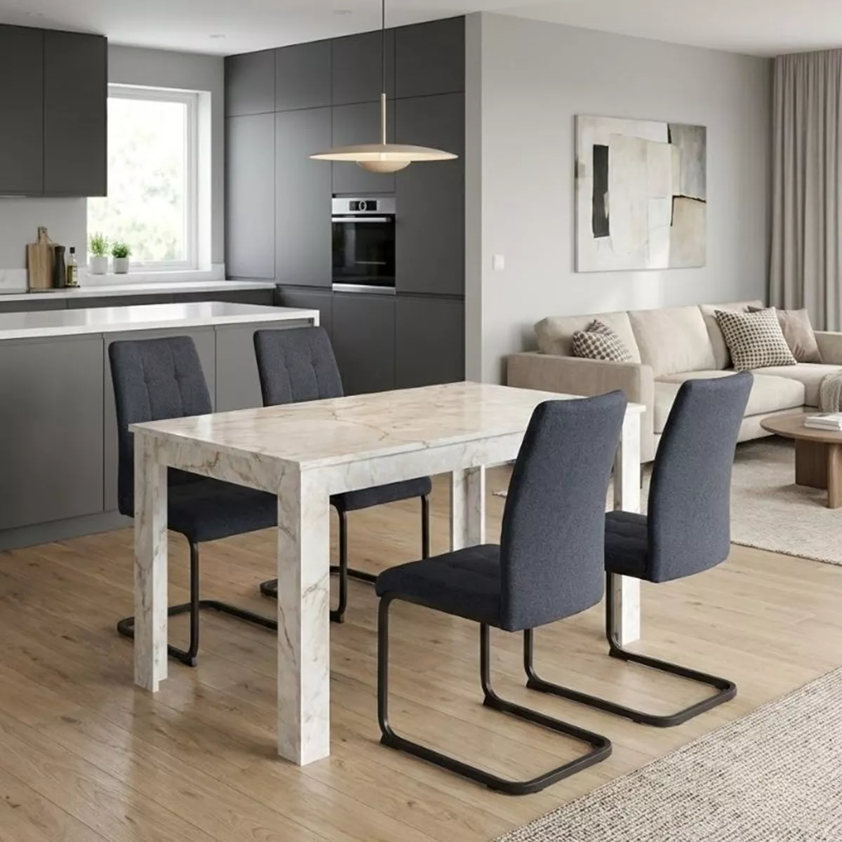 Σετ τραπεζαρία 5τμχ Darlen - Laura Megapap χρώμα λευκό εφέ μαρμάρου - ανθρακί 125x72x74εκ.
