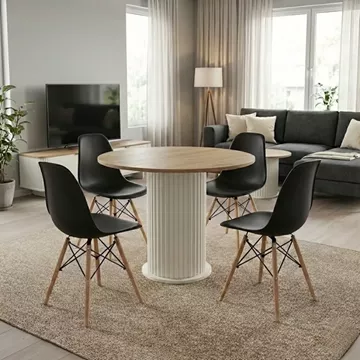 Σετ τραπεζαρία 5τμχ Bohema - Nova Megapap χρώμα ivory/sepet oak - μαύρο Ø90x77,7εκ.