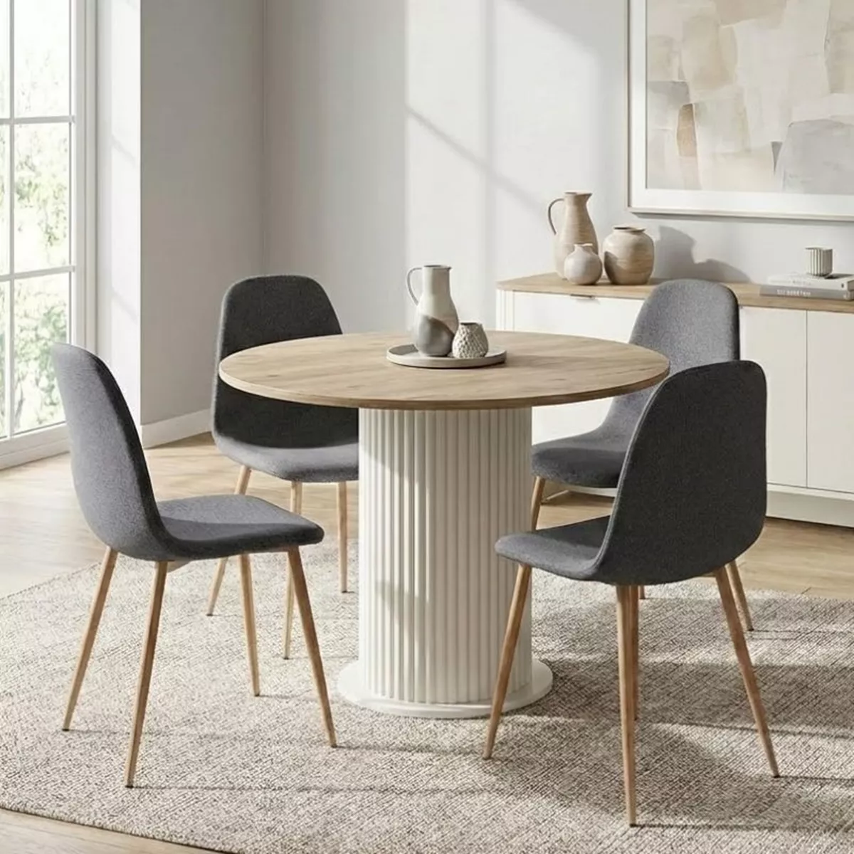 Σετ τραπεζαρία 5τμχ Bohema - Iris Megapap χρώμα ivory/sepet oak - γκρι Ø90x77,7εκ.