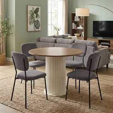 Σετ τραπεζαρία 5τμχ Bohema - Kevin Megapap χρώμα ivory/sepet oak - γκρι Ø90x77,7εκ.