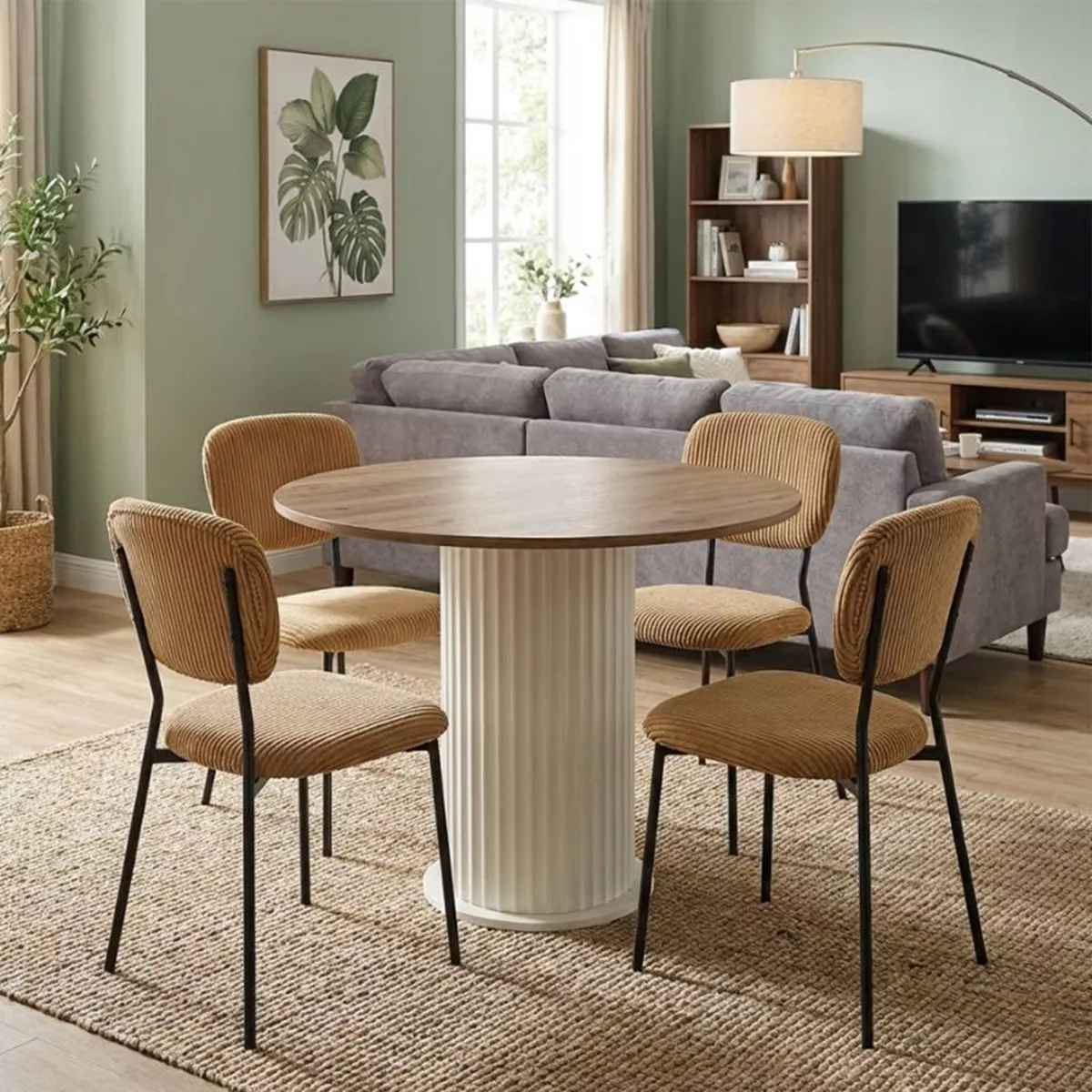 Σετ τραπεζαρία 5τμχ Bohema - Kevin Megapap χρώμα ivory/sepet oak - μουσταρδί Ø90x77,7εκ.