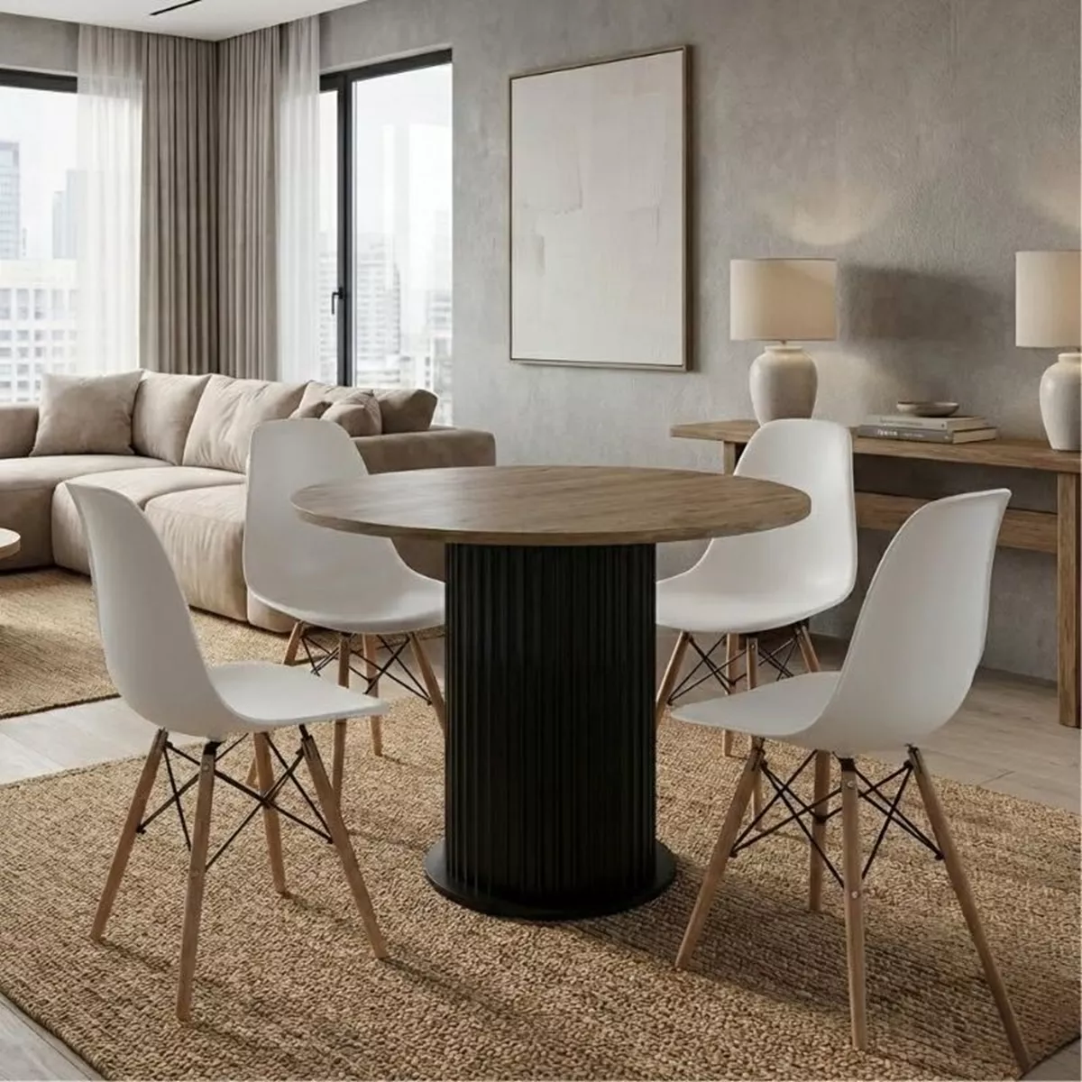 Σετ τραπεζαρία 5τμχ Bohema - Nova Megapap χρώμα μαύρο/sepet oak - λευκό Ø90x77,7εκ.
