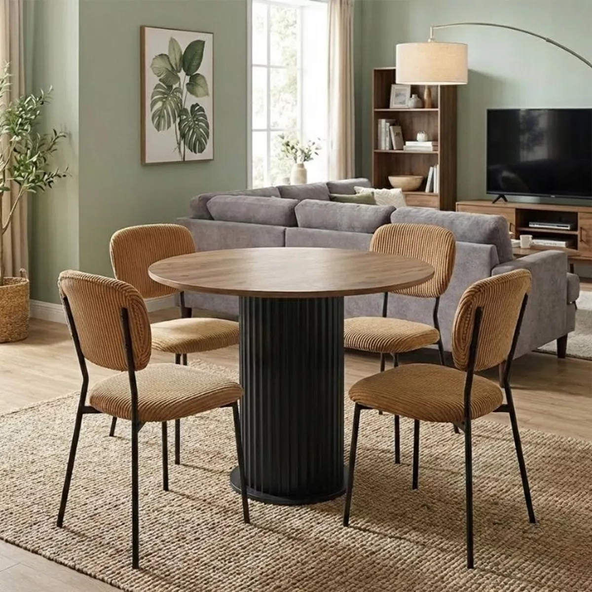 Σετ τραπεζαρία 5τμχ Bohema - Kevin Megapap χρώμα μαύρο/sepet oak - μουσταρδί Ø90x77,7εκ.