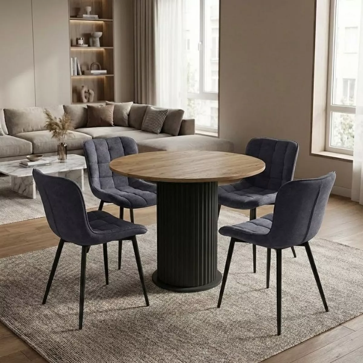 Σετ τραπεζαρία 5τμχ Bohema - Chiara Megapap χρώμα μαύρο/sepet oak - ανθρακί Ø90x77,7εκ.