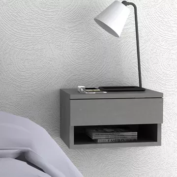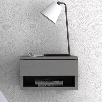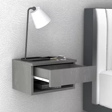 Κομοδίνο επιτοίχιο Mary Megapap χρώμα γκρι σκυροδέματος 40x30x23εκ.