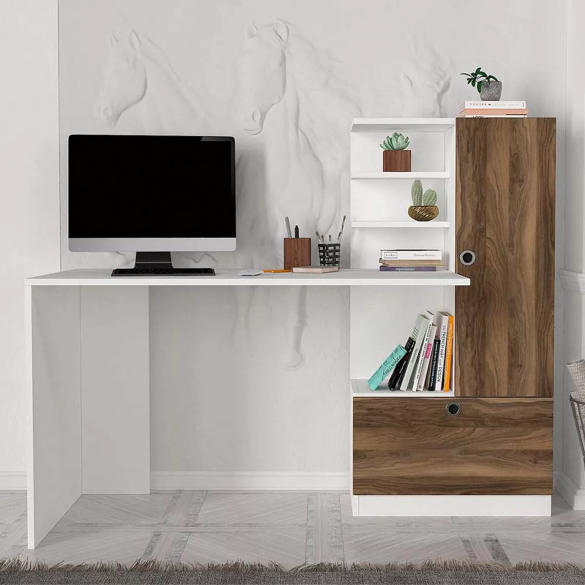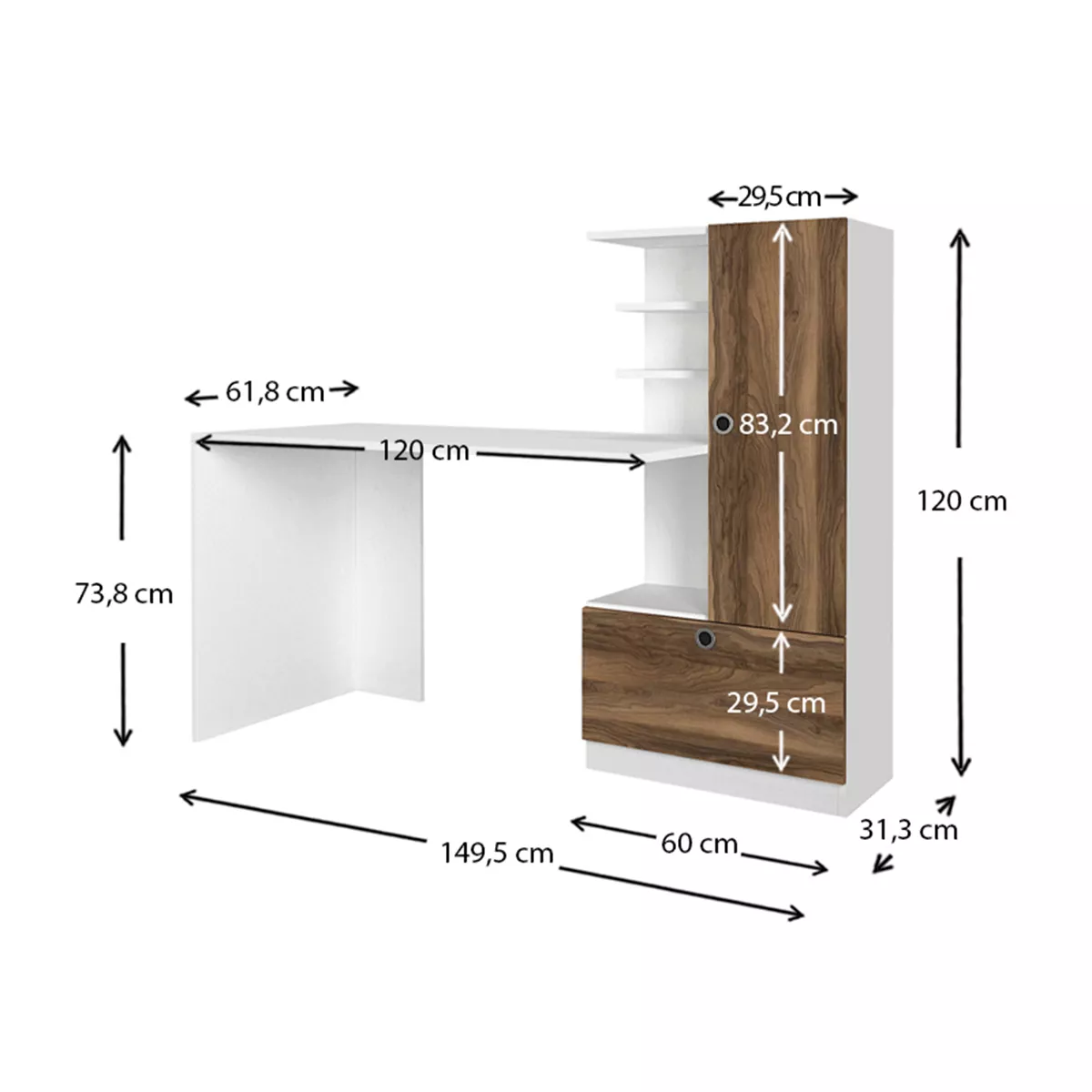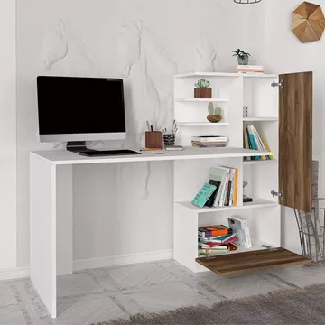 Γραφείο εργασίας Merino Megapap από μελαμίνη χρώμα λευκό - καρυδί 149,5x61,8x120εκ.