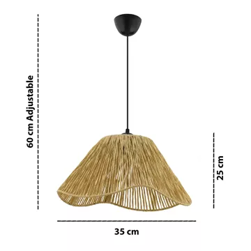 Φωτιστικό οροφής Sukne Megapap E27 γιούτα μονόφωτο χρώμα camel Ø35x60εκ.