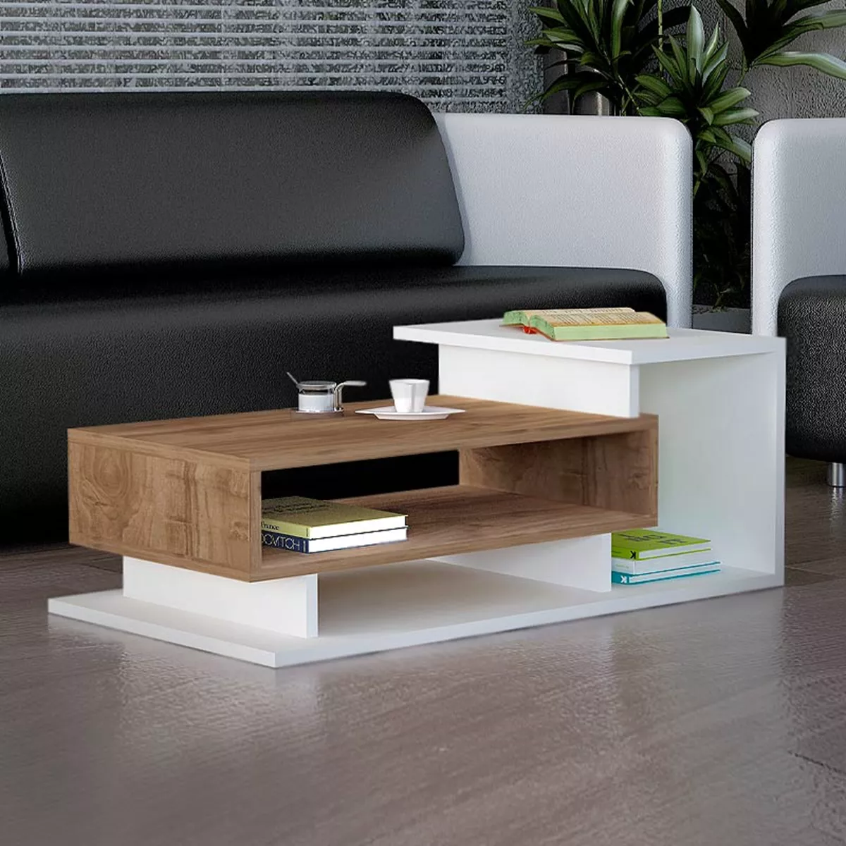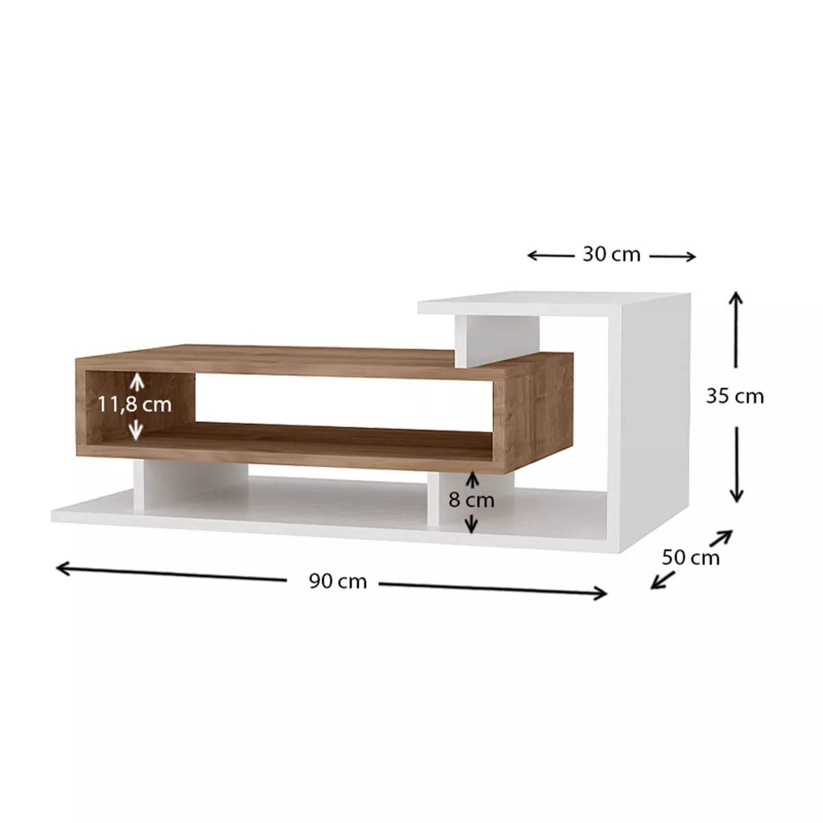 Τραπεζάκι σαλονιού Flynn Megapap από μελαμίνη χρώμα λευκό - καρυδί 90x50x35εκ.