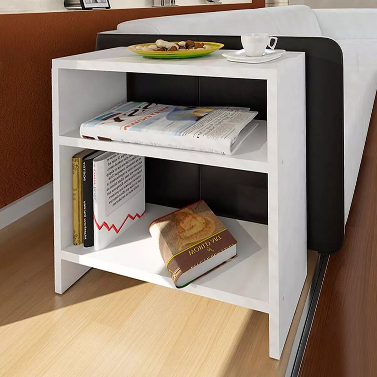Τραπεζάκι βοηθητικό Silvanus Megapap από μελαμίνη χρώμα λευκό 51x17,5x49εκ.