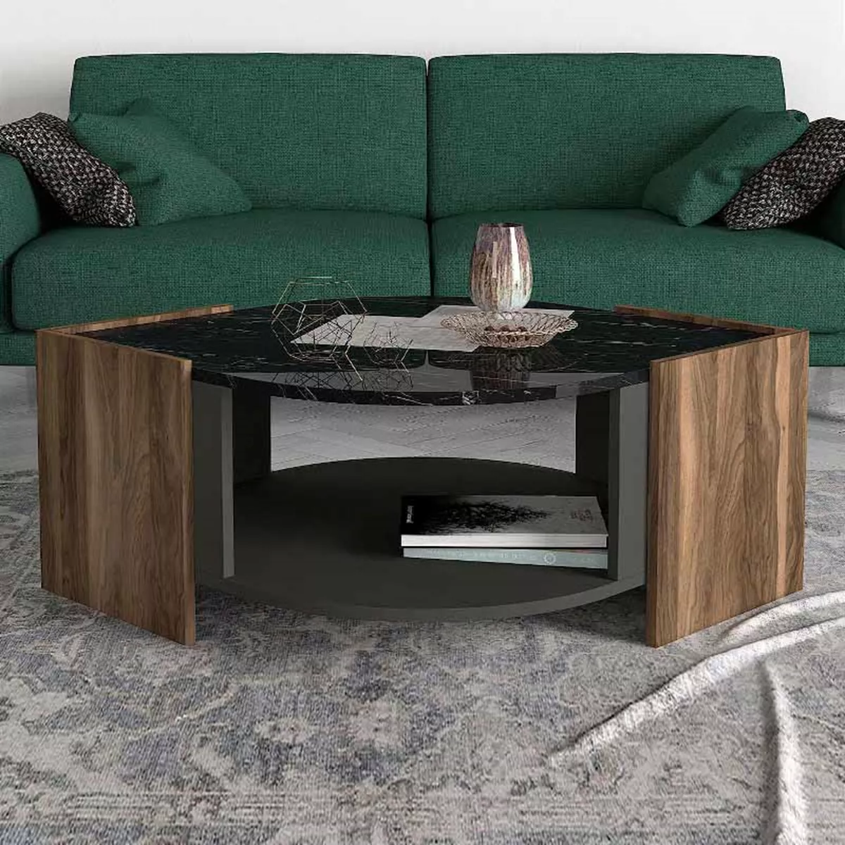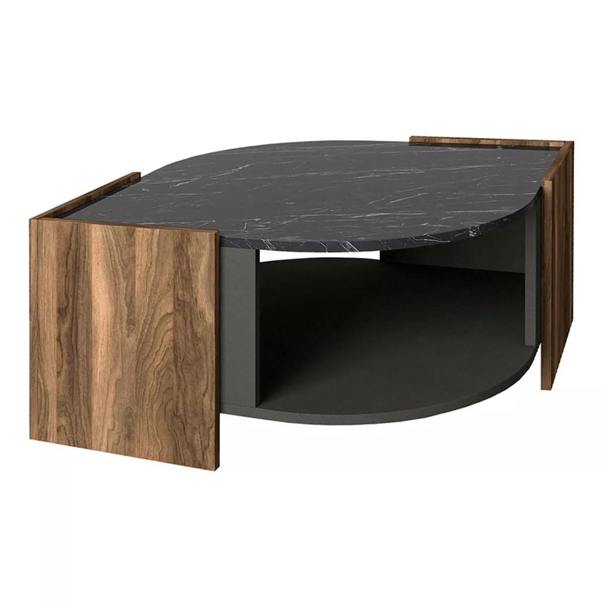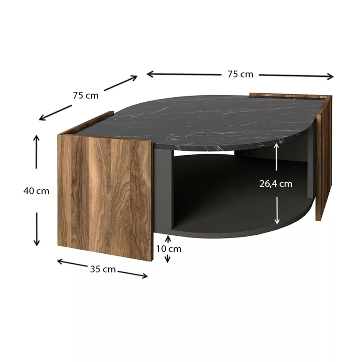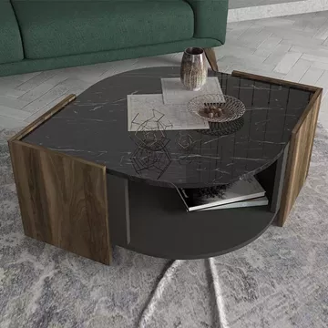 Τραπεζάκι σαλονιού Marbel Megapap από μελαμίνη χρώμα καρυδί - μαύρο εφέ μαρμάρου 75x75x40εκ.