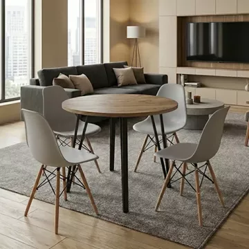 Σετ τραπεζαρία 5τμχ Xana - Nova Megapap χρώμα sepet oak - γκρι Ø90x77,7εκ.