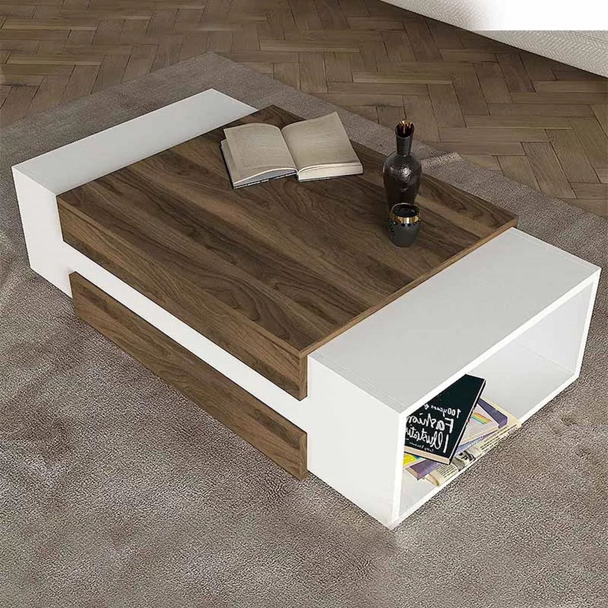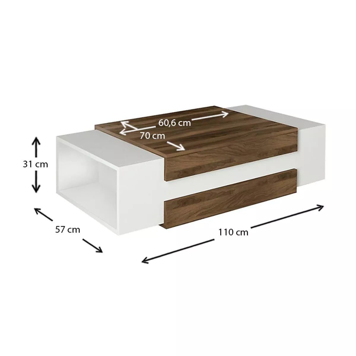 Τραπεζάκι σαλονιού Nora Megapap από μελαμίνη χρώμα λευκό - καρυδί 110x60,6x31εκ.
