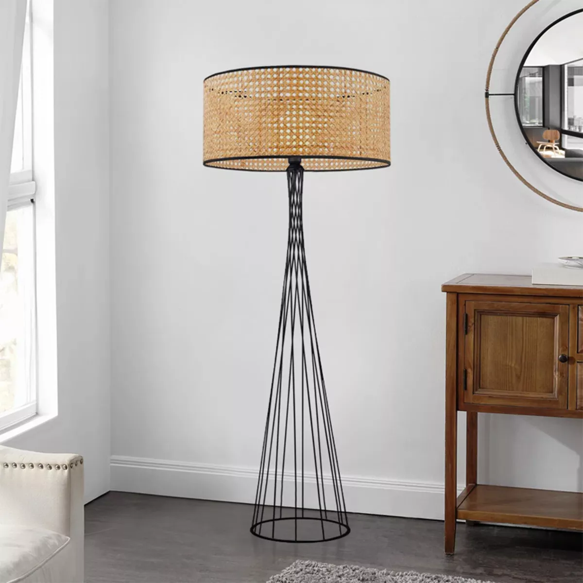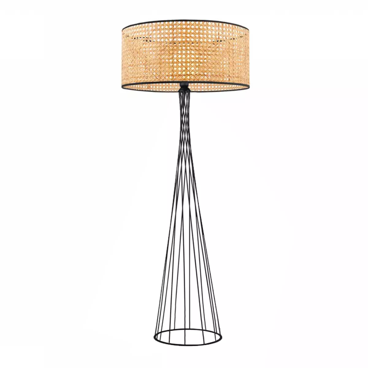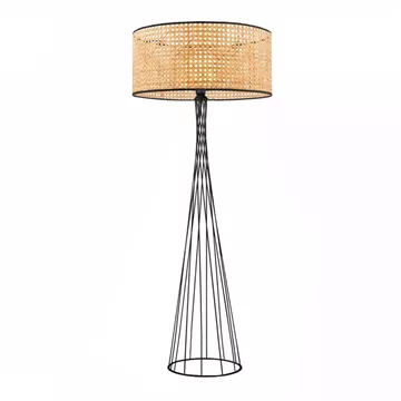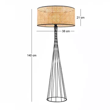 Φωτιστικό δαπέδου Solin Megapap E27 μεταλλικό - ρατάν χρώμα μαύρο - φυσικό Ø38x140εκ.