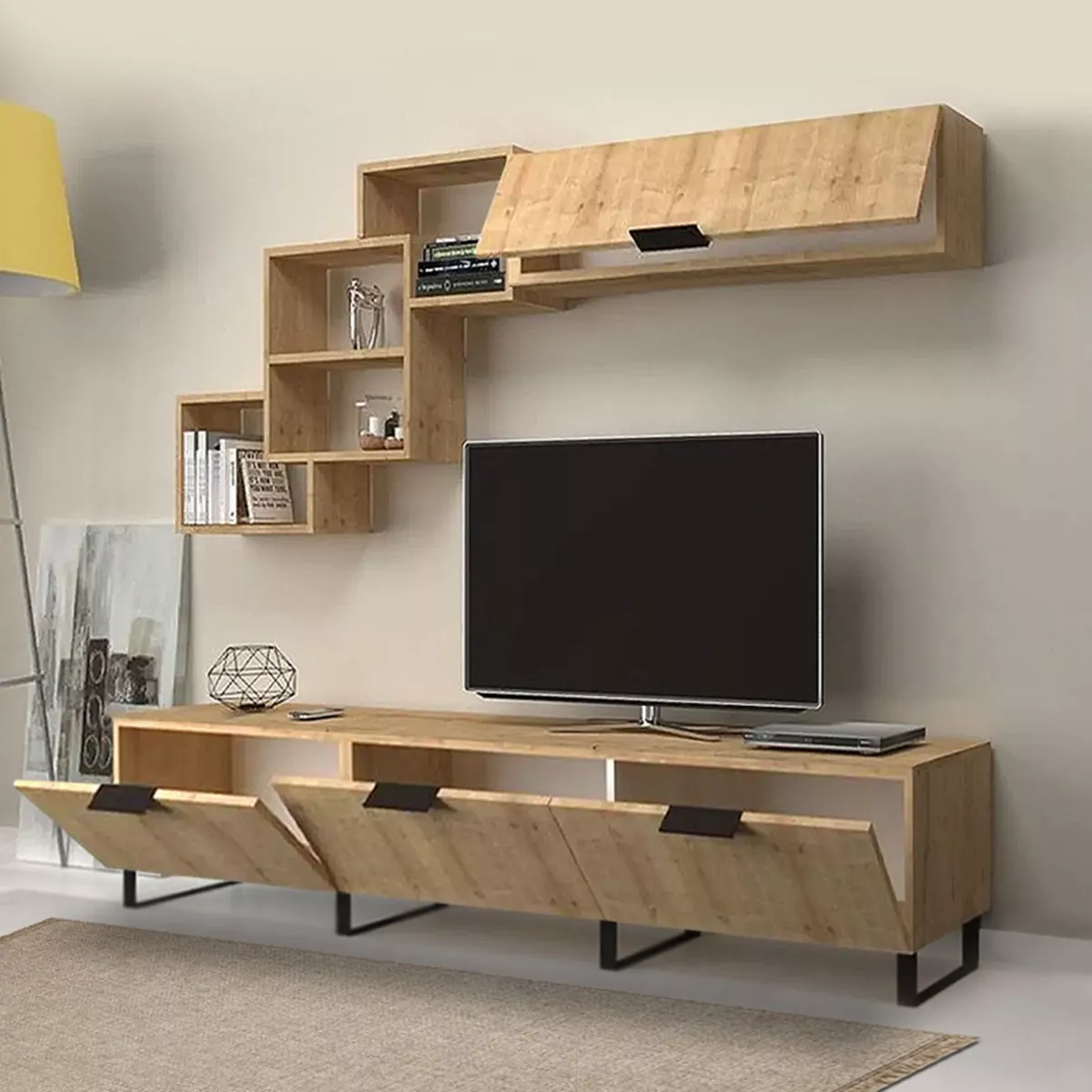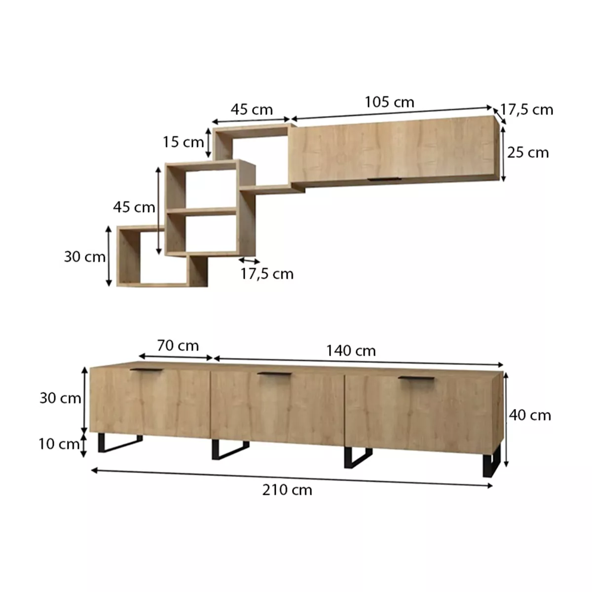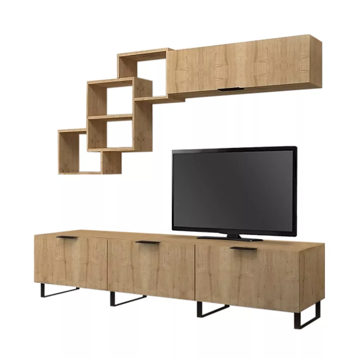 Σύνθεση τηλεόρασης Heydar Megapap από μελαμίνη χρώμα φυσικό οξιάς 210x35x50εκ.